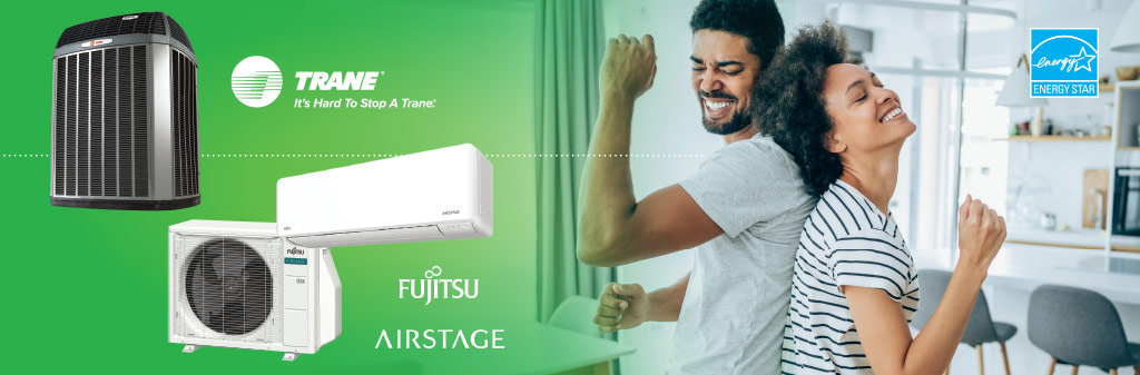 We’re pleased to install a central AC air conditioner from leading manufacturers like Trane®, voted America’s most trusted brand, and Fujitsu® offering a ductless mini split air conditioning system, specifically built to deliver maximum energy efficiency, savings and comfort.
